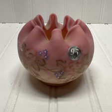 Fenton Rosalene Berries and Blossoms Ruffled Satin Glass Hand-Painted Bowl Mint!