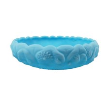 Vintage Fenton Satin Glass Console Bowl Water Lily Pattern Blue 9" X 9" X 3"