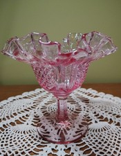 Fenton Pink Pineapple Ruffled Edge Diamond Point Pedestal Bowl Compote