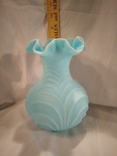 Fenton Blue Custard Glass Vase Hand Blown Unsigned