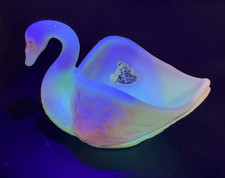 Early 1970's Fenton Opalene Swan 3-3/4" Tall by 5" Long GLOWS