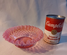 VTG 7 inch Fenton Silver Crest Milk Art Glass Ruffled Peach Pink Bowl