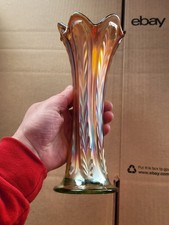 Very Pretty Green Fenton Carnival Glass Plume Panels Vase