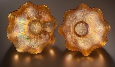 Fenton Glass Wild Flower & Lace Gold Iridescent Glass 8" Cupped Rose Bowl