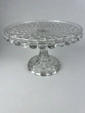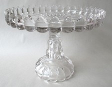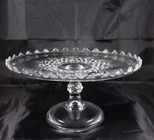 ANTIQUE EAPG Crystal Clear Glass Pedestal 10.5" Wide Cake Stand Thumbprint