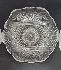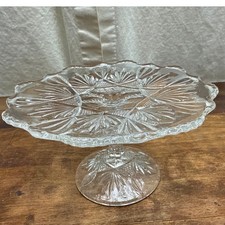 Vintage Antique EAPG 10" x 6" Clear Starburst Pattern /Glass Footed Cake Stand