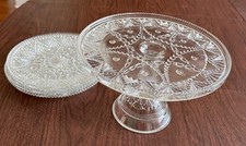 Antique Clear Glass PEDESTAL CAKE STAND Plate Vintage Classic
