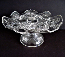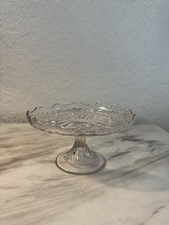 Vintage 1900s EAPG Early American Pressed Glass Pedestal Cake Stand Art Deco 9x5