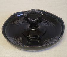 Antique L.E. Smith Black Handled Candy Dish Compote – Etched Art Deco Glass 8"