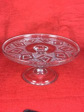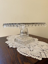 Vintage Antique EAPG 10" x 7 1/8" Clear Pattern /Pressed Glass Footed Cake Stand