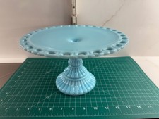 VINTAGE IMPERIAL BLUE MILK GLASS PEDESTAL LACE EDGE CAKE STAND FLAWLESS