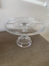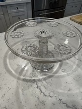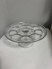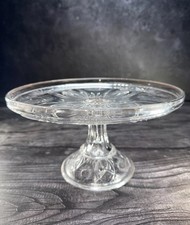 Vintage Antique Early American Clear Tall Glass Cake Stand 7.5” H X 10.5” W