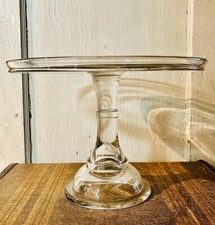 Antique Clear Hand Blown Glass 9.5" Cake Plate Cake Stand