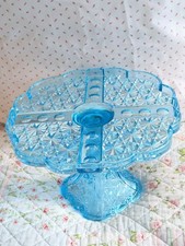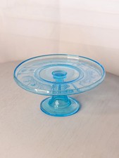 Antique Small Bryce Glass Willow Oak Blue Cake Stand