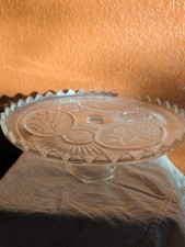 Antique Early American Pressed Glass Cake Stand 9" by 4" tall