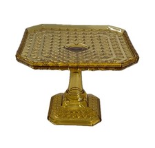 Antique Amber Glass Square Cake Stand in Daisy and Button Thumbprint Pattern