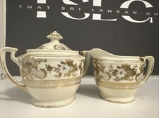 Rare Noritake 1940s N1181 Creamer & Sugar Bowl W/Lid Gold Encrusted Flowers Trim