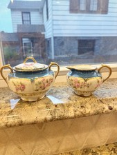 Antique RS Prussia Hand-Painted Handled Sugar Bowl & Creamer Set, Please Read