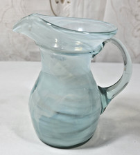 VTG Fenton? 1940s Blown Glass Blue Swirl Creamer /Syrup Pitcher 4.5" Tall