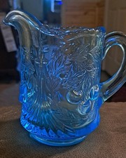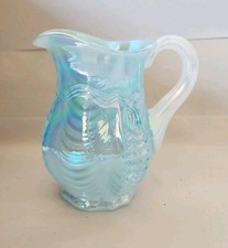 Fenton Empress Blue Feather and Drape cream pitcher opalescent glass turquoise