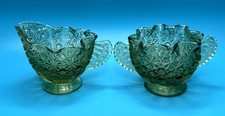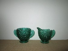 Vintage Fenton Emerald Green Daisy And Button & Bows Creamer & Sugar Set