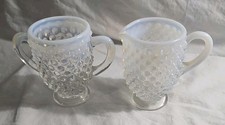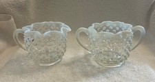 Vintage Fenton Moonstone Opalescent Hobnail Creamer & Sugar Set