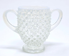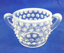 Fenton Hobnail Two Handle Sugar Bowl Opalescent White Clear Open Dish