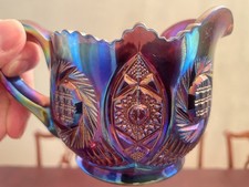 Fenton Art Glass Black Amethyst Carnival Aztec Pinwheel Creamer Handmade 1930s