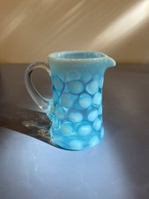 Fenton Art Glass Blue Opalescent Coin Dot Creamer Pitcher ~ Unmarked Vintage