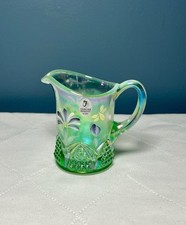 Fenton Art Glass Hand Painted Creamer Small Pitcher Apple Green Button & Arch