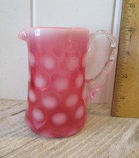 Fenton Pink Coin Dot Pitcher Creamer Cranberry Vintage 4"