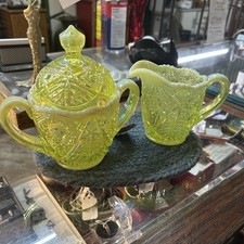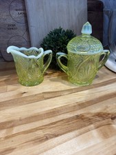 Fenton Topaz Opalescent Individual Creamer and Sugar - Uranium