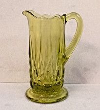 Vintage Fenton Pressed Glass Small Green Creamer Pitcher With Handle