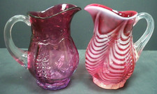 3 art glass CREAMERS - Amberina, Opalescent, Cranberry - Antique Fenton Pilgrim