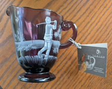 Vintage Fenton Art Glass Purple Creamer Pitcher Mary Gregory Child Playing Golf