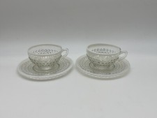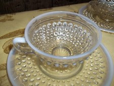 MOONSTONE GLASS HOBNAIL OPALESCENT PLATES CUPS & SAUCERS SET OF 2