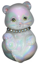 Vintage Fenton 3.5" Hand Painted Iridescent Necklace Glass Teddy Bear Signed