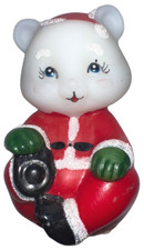 Vintage Fenton 3.5" Hand Painted Santa Christmas Glass Teddy Bear Signed