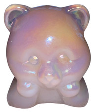 Vintage Fenton 3.5" Rare Pink Iridescent Glass Laying Teddy Bear Signed