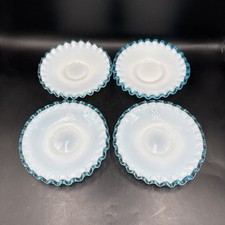 Set of 4 Vintage Fenton Aqua Crest Milk Crest Saucers-6" Pale Blue Ruffle