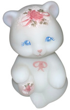 Vintage Fenton 3.5" Hand Painted Rose Flowers Glass Teddy Bear Signed