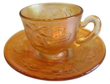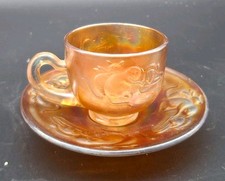 Fenton Marigold Carnival Glass Kittens Small Cup & Saucer Set