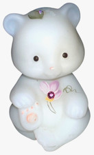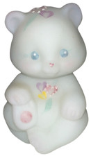 Vintage Fenton 3.5" White with Flow Blue Flowers Glass Teddy Bear Signed