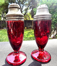 Ruby Fenton Diamond Optic #1502 Salt And Pepper Shakers