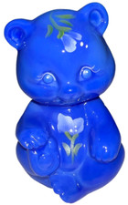 Vintage Fenton 3.5" Blue with White Flowers Glass Teddy Bear Signed