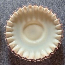 4 Fenton Rose Crest Milk Crest Saucers-6" Pale Pink Ruffle