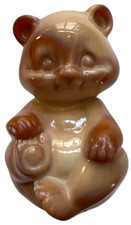 Vintage Fenton 3.5" Translucent Caramel Brown Agate Glass Teddy Bear With Label