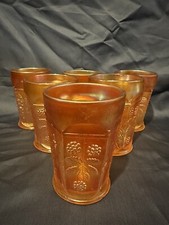 Vintage Fenton Iridescent Orange Carnival Glass Butterfly Grapes Tumbler