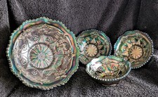 Fenton Little Flowers 4pc Berry Set in Green Carnival 1910c (A)