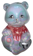 Vintage Fenton 3.5" Hand Painted Iridescent Holiday Red Glass Teddy Bear Signed